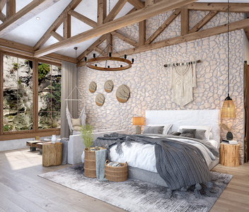Z26-0719美式中式民宿乡村客房卧室床藤编箩筐收纳篓子木墩吊椅