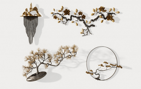 Z28-0712新中式金属山脉树枝梅花松树铁艺挂饰墙饰挂件