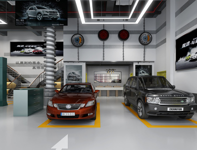 Z02-0524工业风LOFT汽车美容保养修理车间路虎凌志汽车