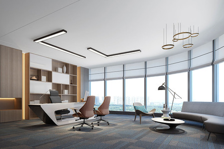 H09-0522现代经理办公室办公桌班台办公椅户型休闲沙发