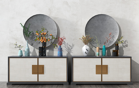 H02-0725新中式餐边柜玄关柜摆台青花瓷瓶插花花艺