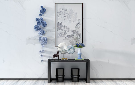 H15-0727新中式玄关柜摆台和氏璧摆台玉璧花型花瓣挂饰
