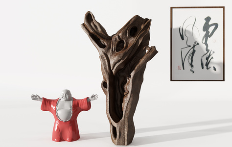 Z25-0709新中式弥勒佛像根雕摆件组合