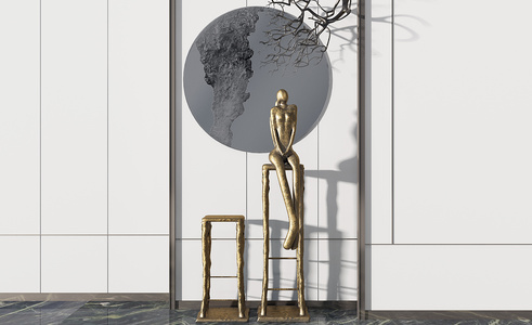 Z28-0709新中式圆形背景端景台玄关人物雕塑艺术品摆件干枝