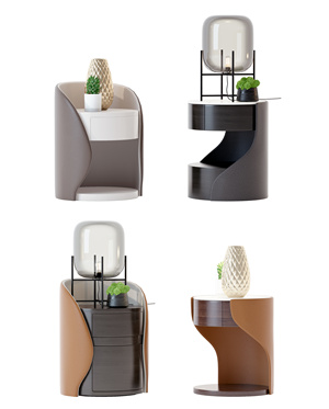 现代圆形皮革床头柜组合