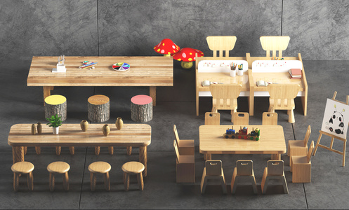 北欧原木儿童动物桌椅