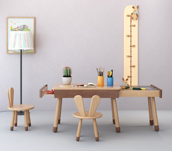 北欧原木儿童书桌椅,身高标尺椅子