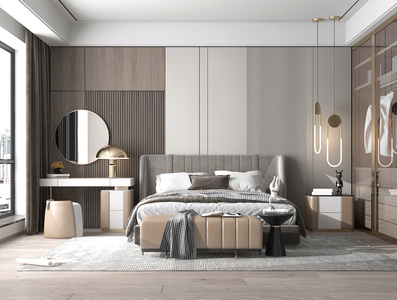 轻奢卧室,简欧式皮革双人床梳妆台,学习桌椅床头柜