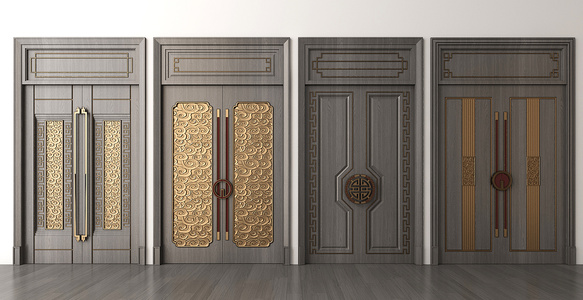 新中式双开门大门,云纹祥云造型雕刻