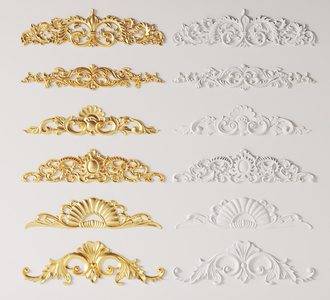 欧式镀金雕花构件,石膏雕花,角花浮雕