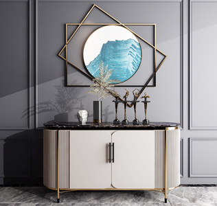 轻奢电视柜边柜,玄关柜摆件,立体画挂画