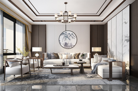 新中式轻奢客厅,沙发茶几单人沙发