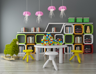 儿童桌椅绵阳座椅摇椅书架水母造型吊灯