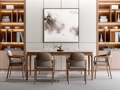 新中式方形餐桌椅,椅子书柜