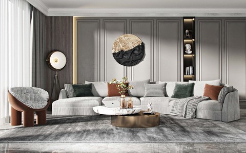客厅弧形,沙发单人椅子沙发,茶几,