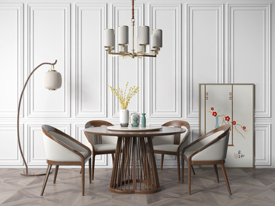 新中式现代圆形餐桌椅,落地灯