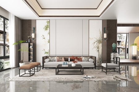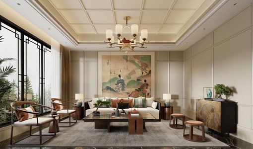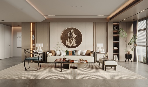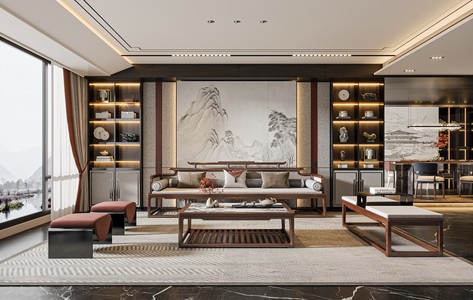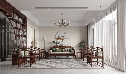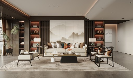 新中式客厅3d模型