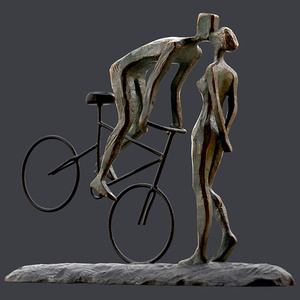 现代抽象人物雕塑自行车雕塑