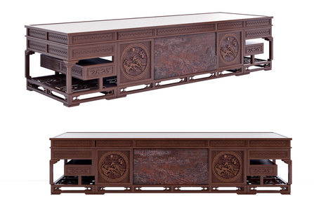 中式古典红木实木浮雕班台,办公桌