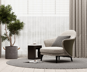 现代 单人休闲沙发座椅 边几