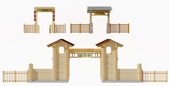 新中式山庄度假村大门,门头,门楼栅栏围墙