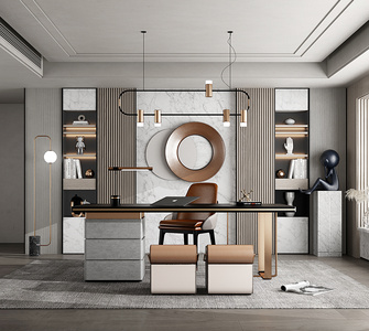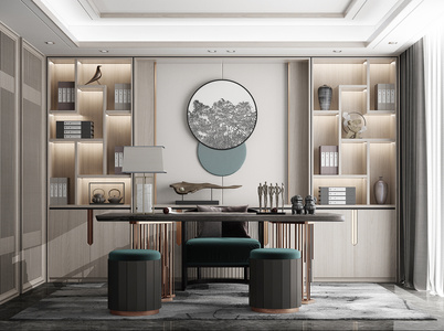 新中式书房,书桌椅,书柜