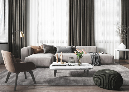 现代客厅,沙发,茶几单人椅子