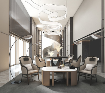 销售中心,售楼处洽谈区,旋转楼梯异形水晶吊灯