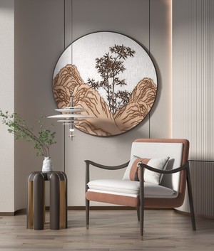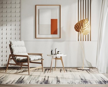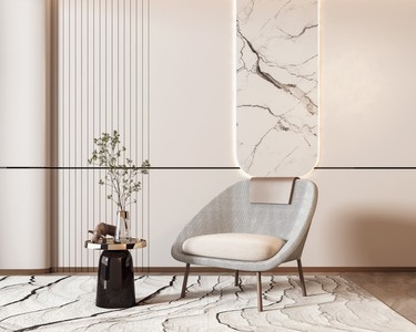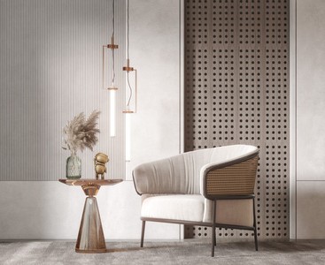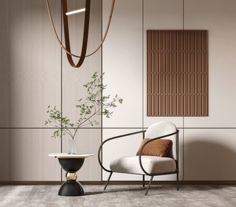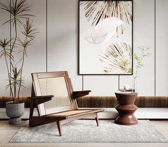 侘寂风休闲椅边几落地灯绿植装饰画吊灯地毯v