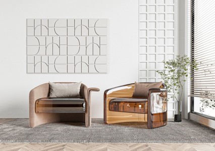 现代皮质单椅,茶几,装饰品,花瓶