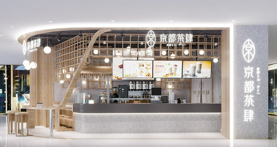 新中式奶茶店,咖啡机,操作台,收银后