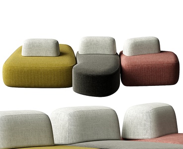 23-现代布艺异形沙发,座凳