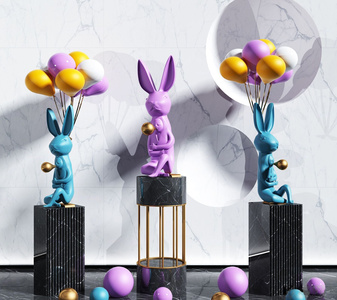 现代女孩兔子气球雕塑,