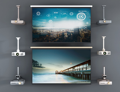 现代投影器材组合,投影仪,幕布 (
