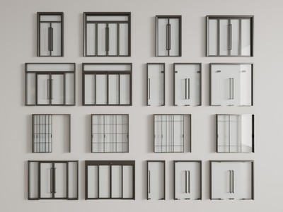 现代办公玻璃门组合3D模型