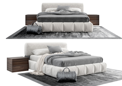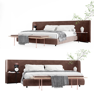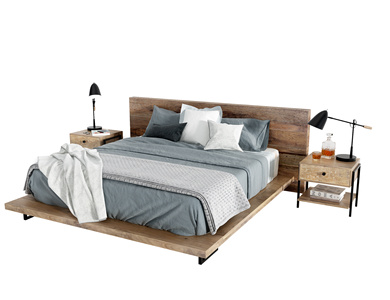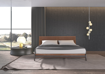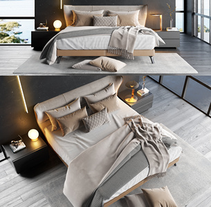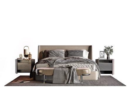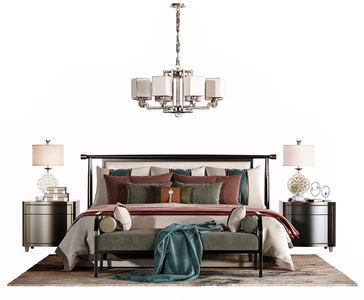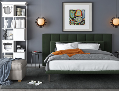 现代双人床 沙发凳 书架 床头吊灯 (1)