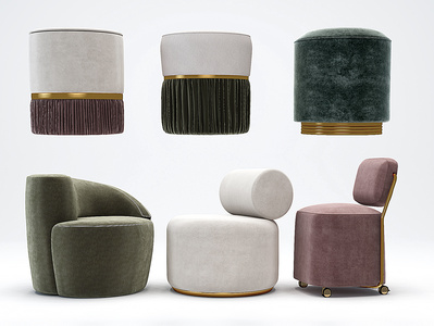 现代圆形凳子,单人沙发组合