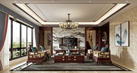 中式古典客厅,餐厅,玄关