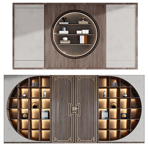 新中式背景装饰柜门组合