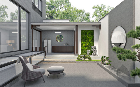 27新中式玄关台 新中式端景台 迎客松 小吊灯 挂画
