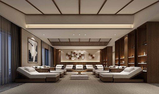 17会所休息区休息大厅按摩床足疗床墙饰挂饰
