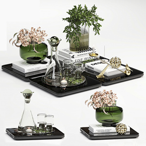 现代托盘_饰品摆件组合_托盘组合_装饰品3D模型