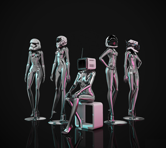 现代金属赛博朋克人物雕塑摆件3d模型