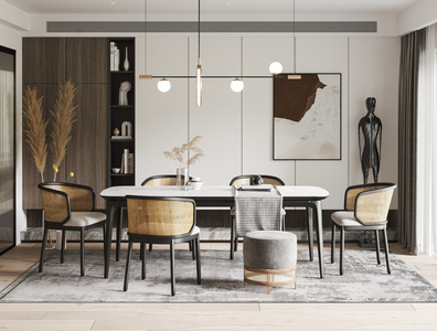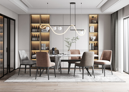 现代餐厅,餐桌椅,吊灯酒柜