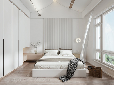 白色北欧现代卧室双人床