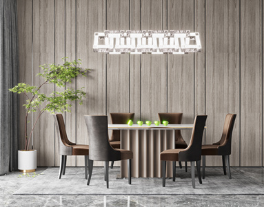 现代餐桌椅模型,绿植盆栽,水晶吊灯