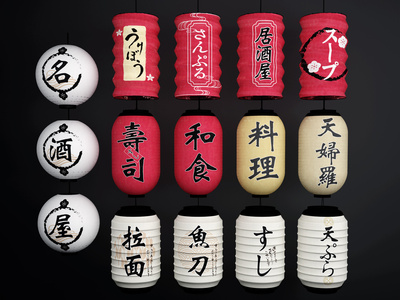 日式灯笼吊灯,球形的柱形的日式灯笼
