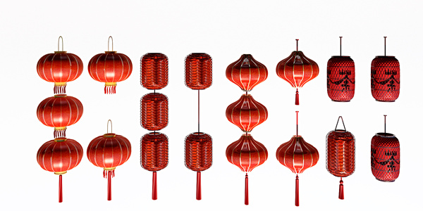 新中式红色灯笼吊灯组合