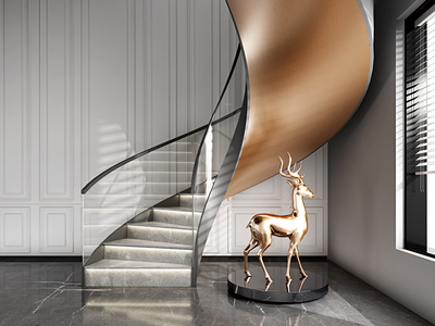 现代轻奢螺旋,旋转楼梯,楼梯间楼梯
