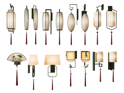 新中式扇面扇子灯笼壁灯